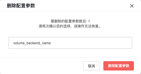 删除配置参数:您可以删除任意一云硬盘类型的配置参数,删除后不可恢复。