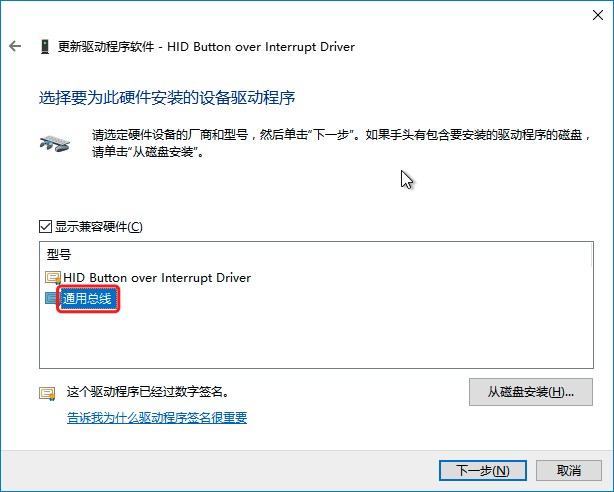 5. 选择[ 通用总线 ] 并点击[ 下一步 ]。