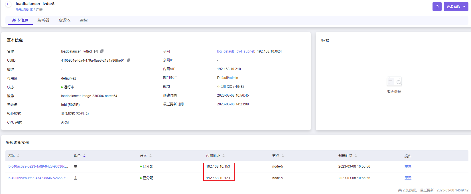 在“独享型负载均衡”页面中,单击上述负载均衡器名称,进入其详情页面。在该详情页面的[资源池]页签中,单击上述新建资源池的名称 ,进入其详情页面。