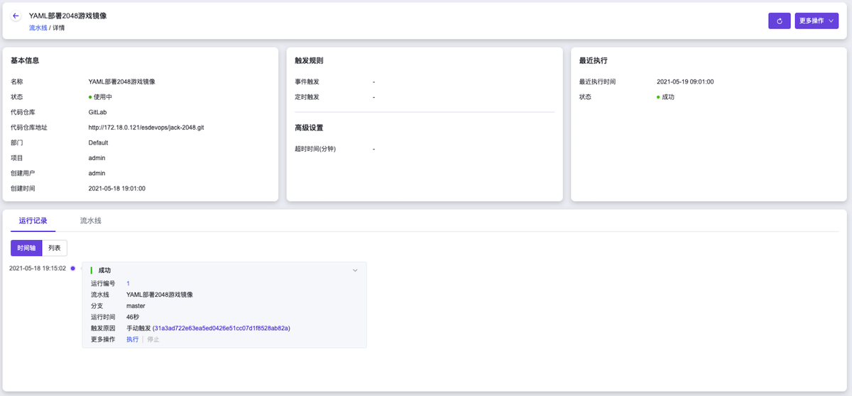 | 流水线-YAML部署2048游戏镜像 | |