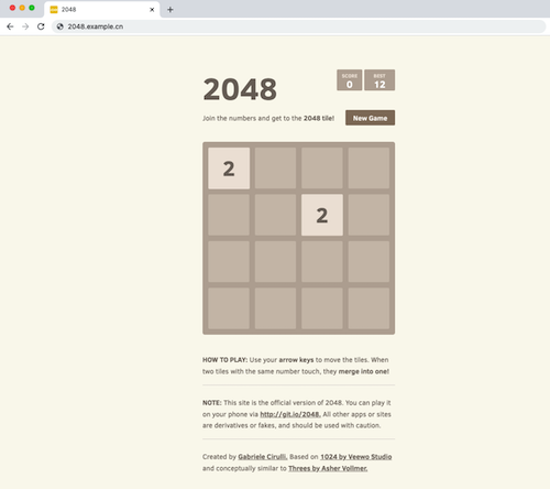 | Deploy阶段 | 通过“通过YAML部署”类型任务部署2048游戏 * YAML文件:名为2048_env.yaml的文件。其直接放置在代码仓库根目录下,方便任务获取 * 访问域名:2048.example.cn |