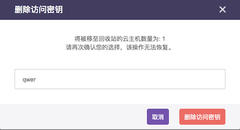 在访问密钥表格中选择您需要删除的访问密钥,点击 删除访问密钥,在跳出的 删除访问密钥 弹窗中点击确定后,访问密钥将被删除且无法使用。