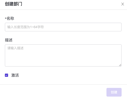 单击 创建部门 ,弹出创建部门对话框。
