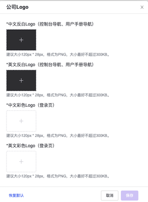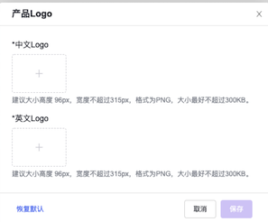 本配置项用于恢复登录页输入框上方的产品默认图标。请根据客户实际业务需求酌情配置。