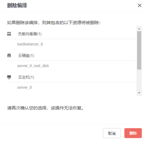 点击 删除 后,该模版将从模版列表中移除,删除的模版不影响基于其部署的编排部署文件。
