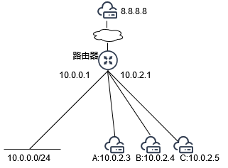 | 10 | IPv4 | 全部 | 重路由 | 10.0.2.3,10.0.2.4,10.0.2.5 | 10.0.0.0/24 | 8.8.8.8/32 | 10.0.0.1 | - |