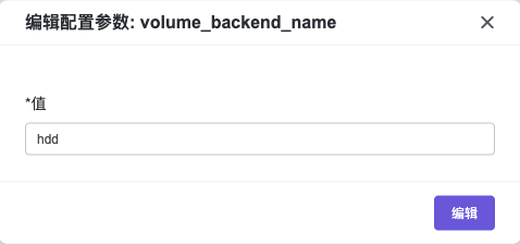 编辑:选择某个云硬盘类型,点击编辑,您可以修改云硬盘类型的名称、描述及配置参数。