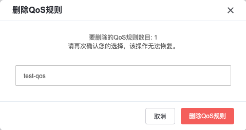删除 QoS 规则:您可以对全局任意 QoS 规则进行删除操作,删除后不可恢复。