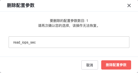删除配置参数:您可以删除任意一云硬盘类型的配置参数,删除后不可恢复。