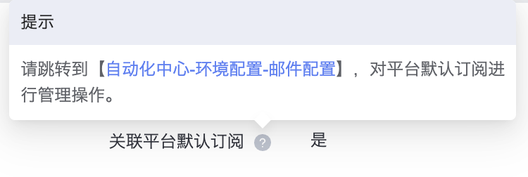 在告警分组详情页的基本信息中,可以通过关联平台默认订阅字段右侧的提示按钮中的链接,进入平台默认订阅的编辑界面。