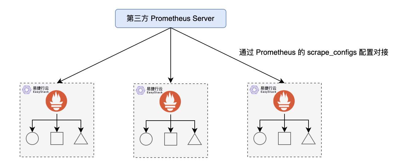 对于第三方 Prometheus Server 而言,可以同采集 Exporter 实例一样从云平台 Prometheus Server 实例获取指标数据。其核心在于每个集群都包含一个用于获取当前实例中监控样本的接口,可观测服务支持 /federate 接口来配置 Prometheus 集群联邦。