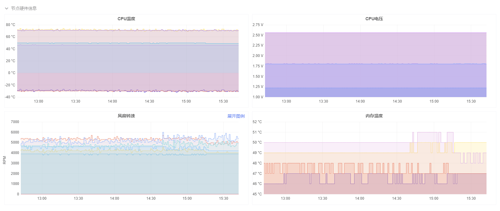 节点硬件信息 监控当前节点的CPU的温度/电压、风扇转速以及内存温度。