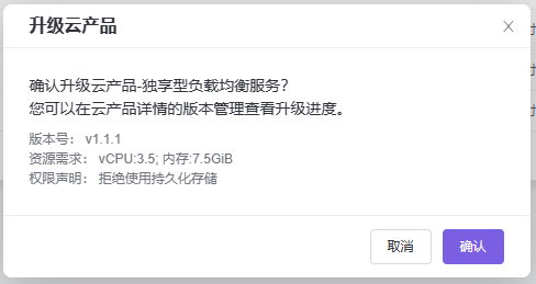 云产品升级已经完成。但已创建的负载均衡实例并没有完成升级。此时它的功能仍然可用,但是不允许操作,且在独享型负载均1.1.2版本中新增的功能将无法启用,因此需要尽快对负载均衡实例进行升级。注意:此步骤会造成1s以内的业务中断。