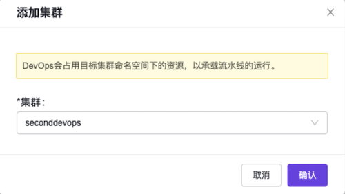 本操作用于建立Kubernetes集群与流水线的关联,将该集群用于承载DevOps所有流水线的运行。