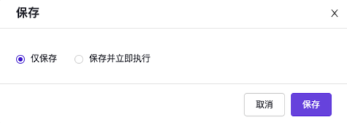 保存后,在弹出的“保存”对话框中,选择保存方式后,单击保存,完成流水线创建,并关闭当前页面。执行流水线。