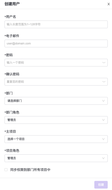 | 部门管理员 | 可管理所在部门的项目、用户 |