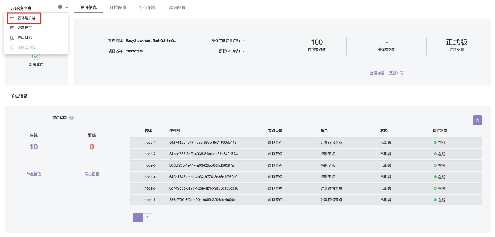 - 警告:仅当扩容节点的序列号包含在许可中时,才可被授权、扩容。