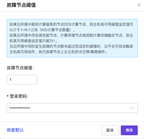 配置,弹出“故障节点阈值”对话框。输入故障节点阈值和云管理员登录密码后,单击