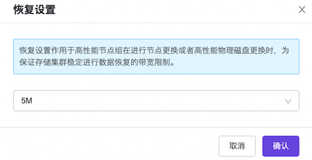 高性能节点组内的高性能节点在进行激活、重启操作时,为保证存储集群稳定进行数据恢复,请先参考以下操作设置该节点组的数据恢复带宽。其中,该节点组状态必须为“激活成功”。