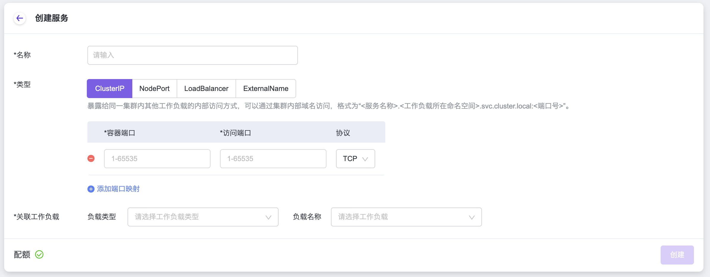 | 关联工作负载 | 选择服务需关联的工作负载。 |