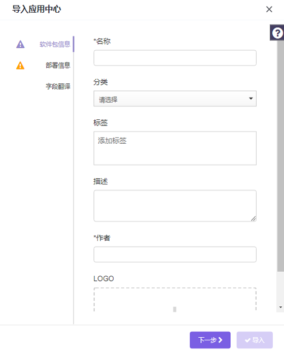 - 若您选择 导入应用中心 ,此时页面将跳出导入应用中心弹窗,如下页面。