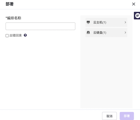 输入您的 编排名称,若勾选出错回滚,意味着当您创建编排失败时,该资源编排会自动删除