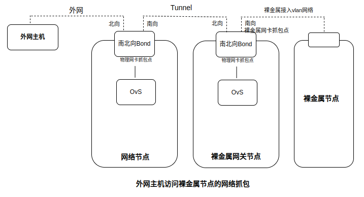 创建,完成操作。其中,选择的抓包点顺序为:网络节点的北向Bond物理网卡,网络节点的南向Bond物理网卡,裸金属网关节点的北向Bond物理网卡,裸金属网关节点的南向Bond物理网卡。各参数的具体说明,请参考 配置网络抓包。这里我们在创建时,选择的